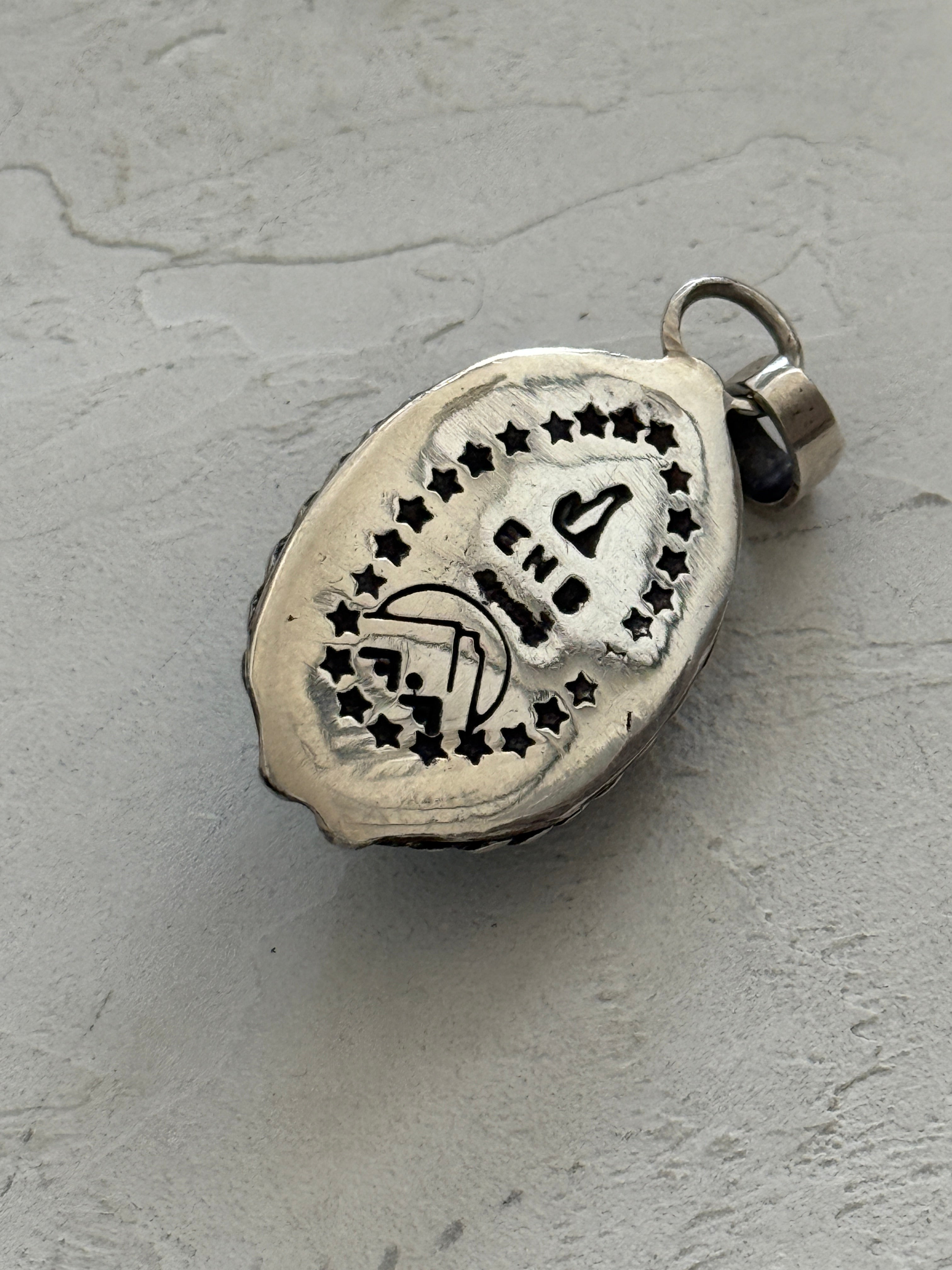 こちらは、Navajoの作家Erica Nicolas Begayによる初期の作品で、裏面には山・太陽・星をモチーフにしたユニークな刻印が施されています。